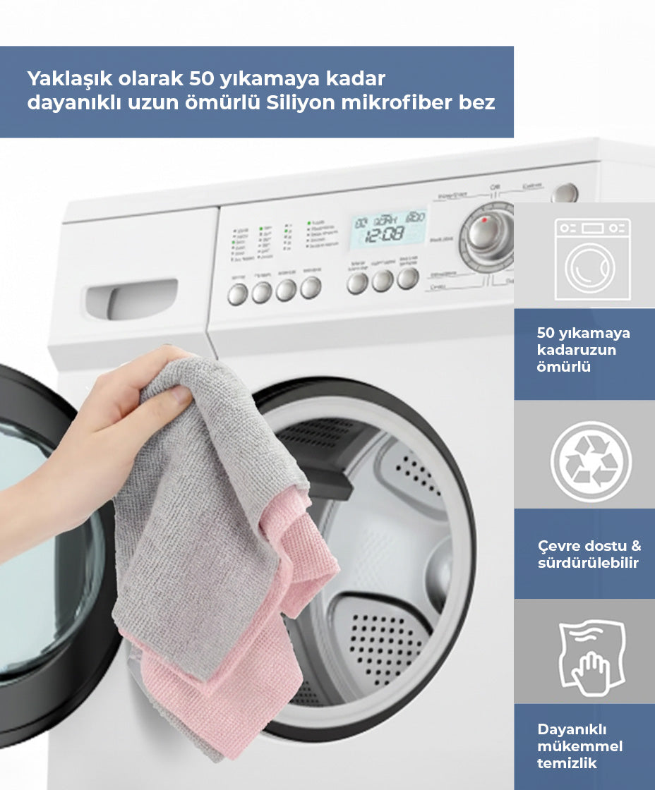 Sıradan bezlerle ovalamaya son! Özel mikrofiber teknolojisi; yağı, kiri ve su lekelerini mıknatıs gibi çeker. Tezgâh, ocak, banyo veya cam fark etmez; arkasında sadece pırıl pırıl bir yüzey bırakır.
